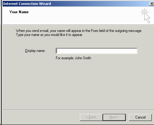 1. When you first start Outlook Express you will be prompted to enter your name. Please do so and click Next.