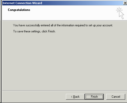 5. At this point your account is setup. Click Finished to begin using Outlook Express. You should follow this FAQ to set the server time settings for Outlook Express.